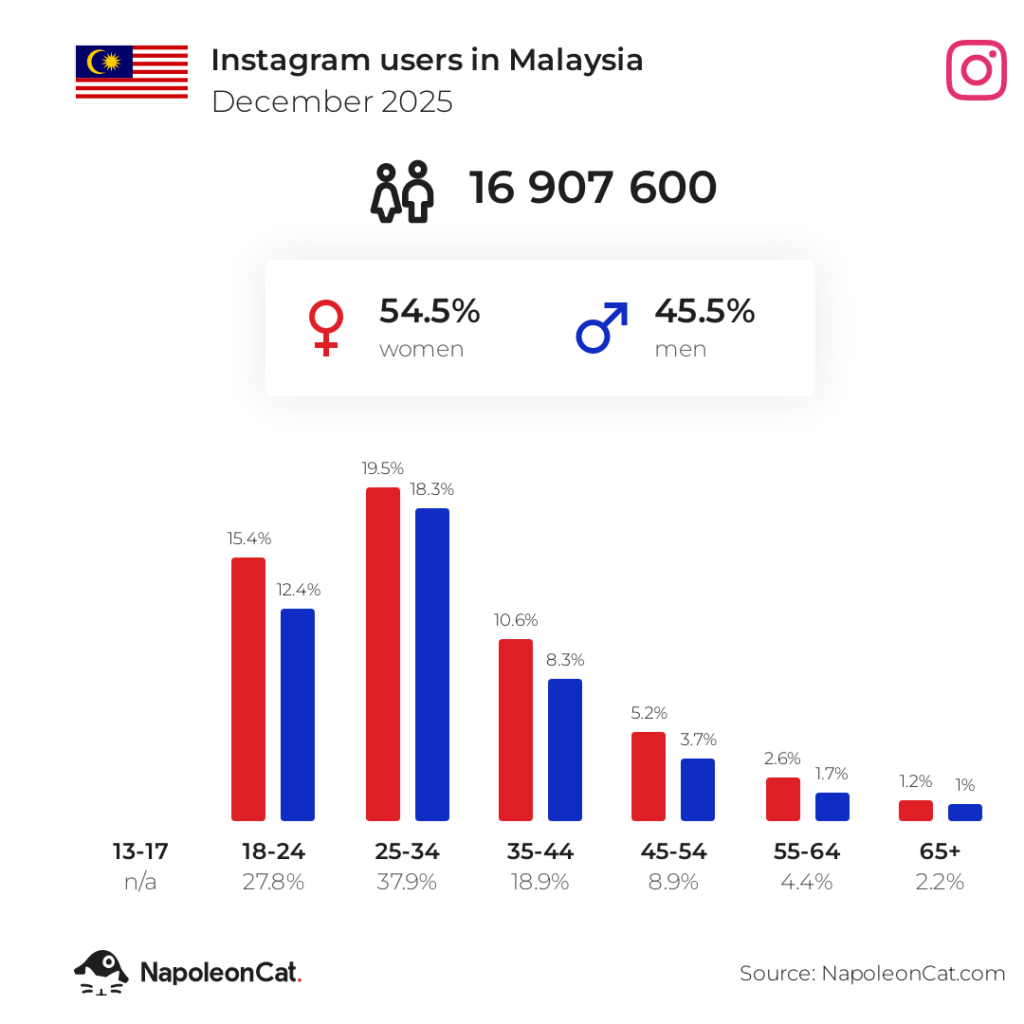 - 16.9M Instagram users in Malaysia (Dec 2025) (stats.napoleoncat.com)